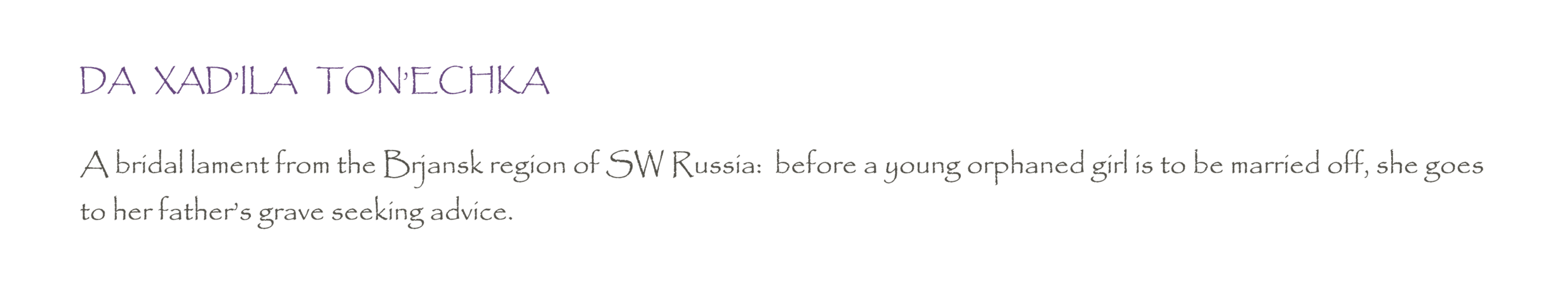 DA XAD’ILA TON’ECHKA
